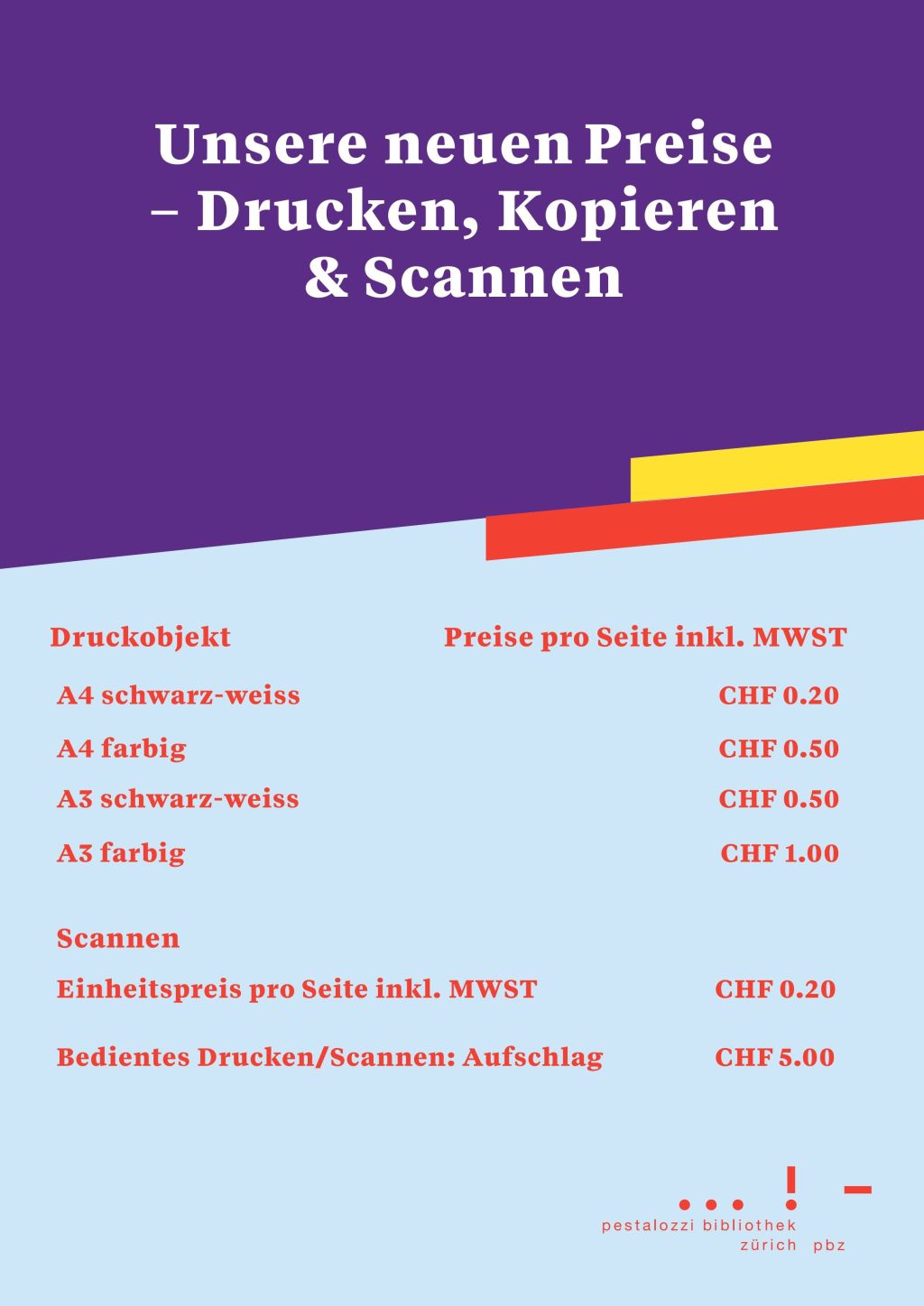 Seit August 2025 stehen Ihnen in jeder unserer Bibliotheken dieselben modernen Drucker zur Verfügung, mit denen man in unterschiedlichen Formaten drucken, kopieren und scannen kann. Sie können sowohl farbig als auch schwarz-weiss in den Formaten A4 und A3 drucken – bequem über die Kuario App. Die Geräte lassen sich selbstständig bedienen, sodass die Nutzung auch während der Open Library-Zeiten möglich ist.